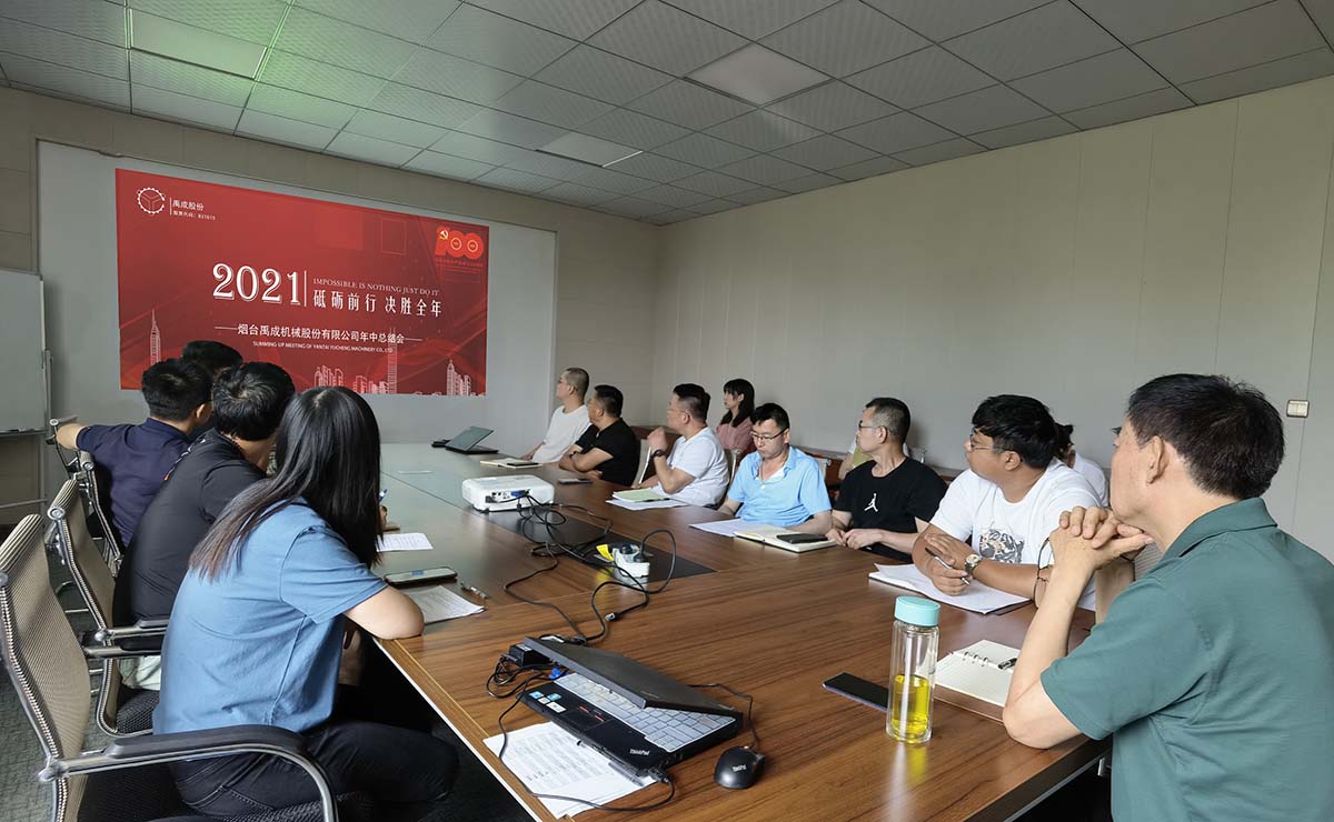 2021年7月4日,烟台禹成机械股份有限公司召开2021年上半年度工作总结会,旨在总结工作、分析问题、把握形势,为全面完成公司年度目标进行再动员、再部署、再落实。公司高管团队、各部门主管及各项目负责人出席了本次会议。